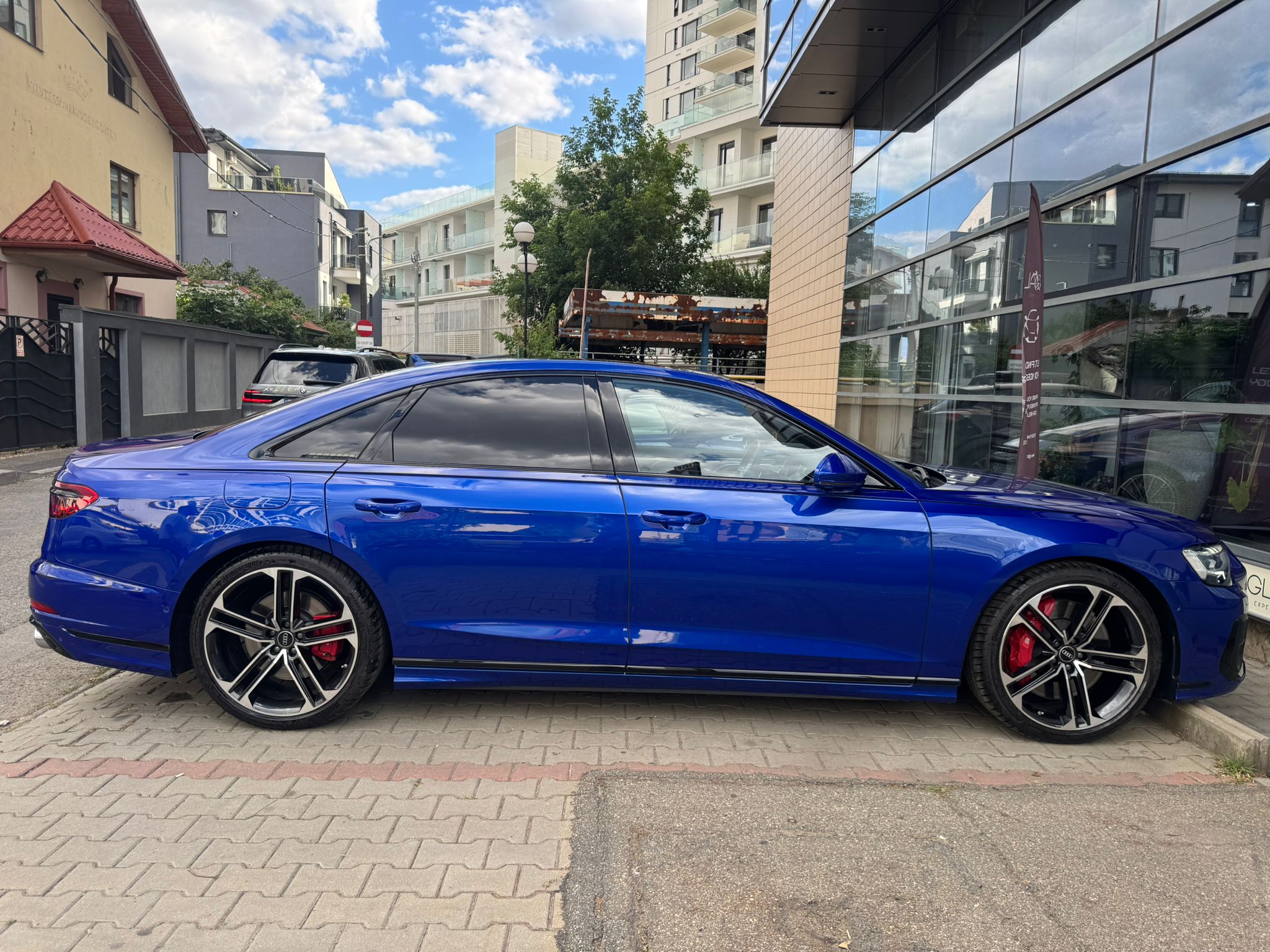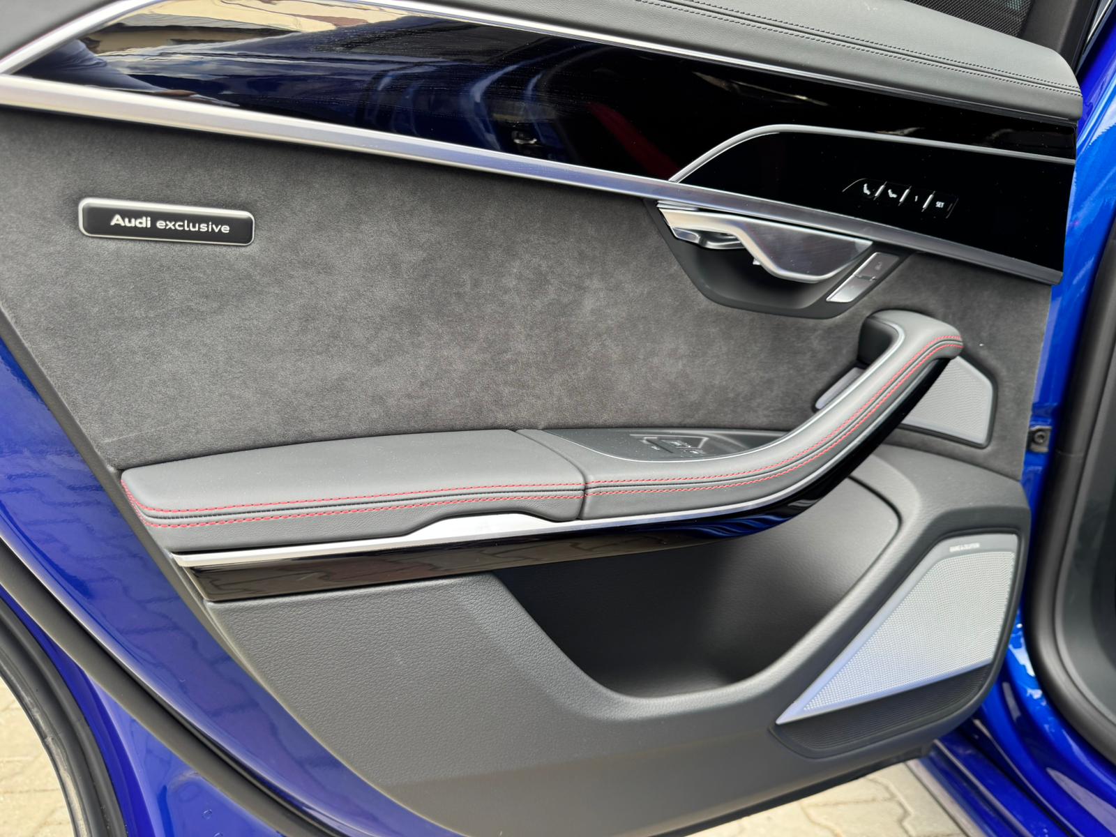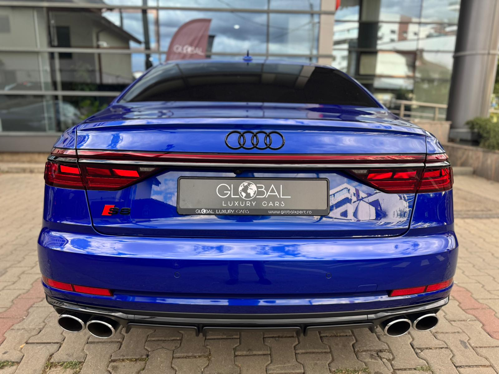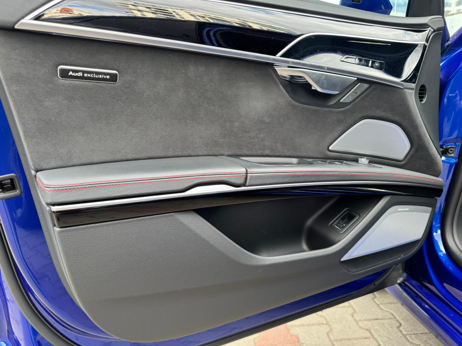 Audi S8 2023 cu tracțiune quattro, suspensie adaptivă predictivă și pachet complet Audi Exclusive. Dotat cu B&O 3D, scaune cu ventilație și masaj față/spate, Digital Matrix LED, camere 360° și Head-Up Display.