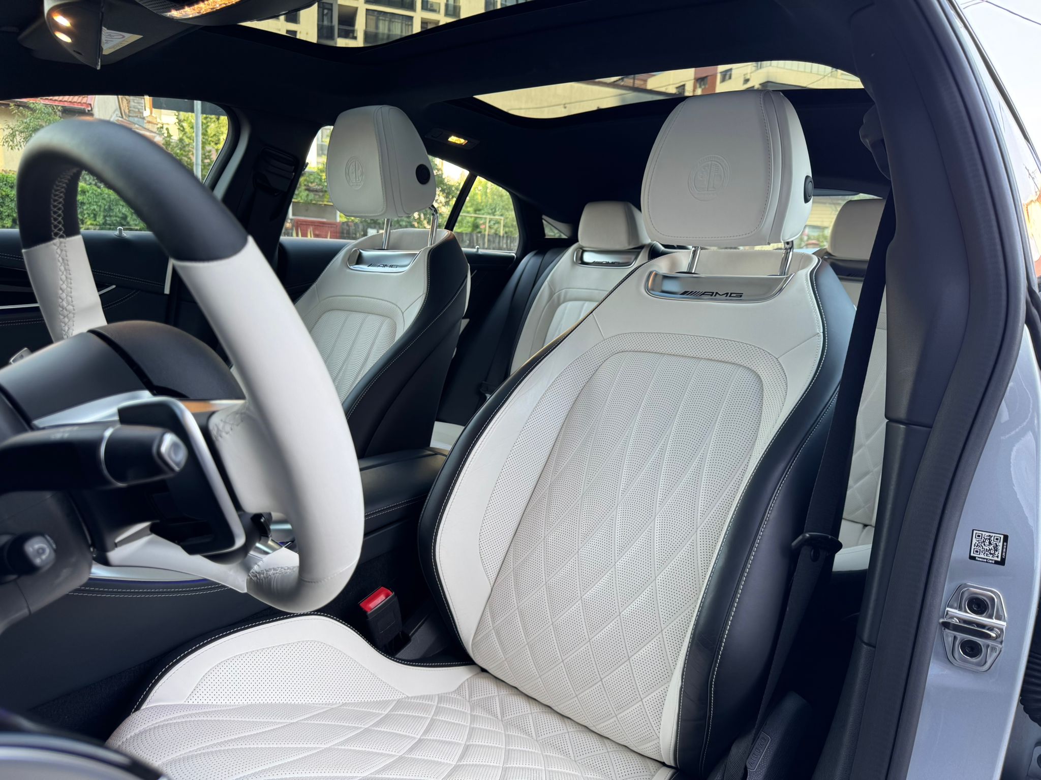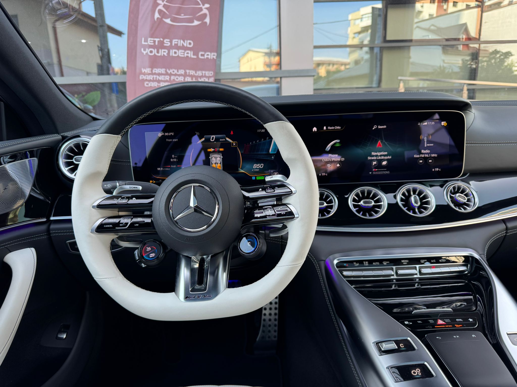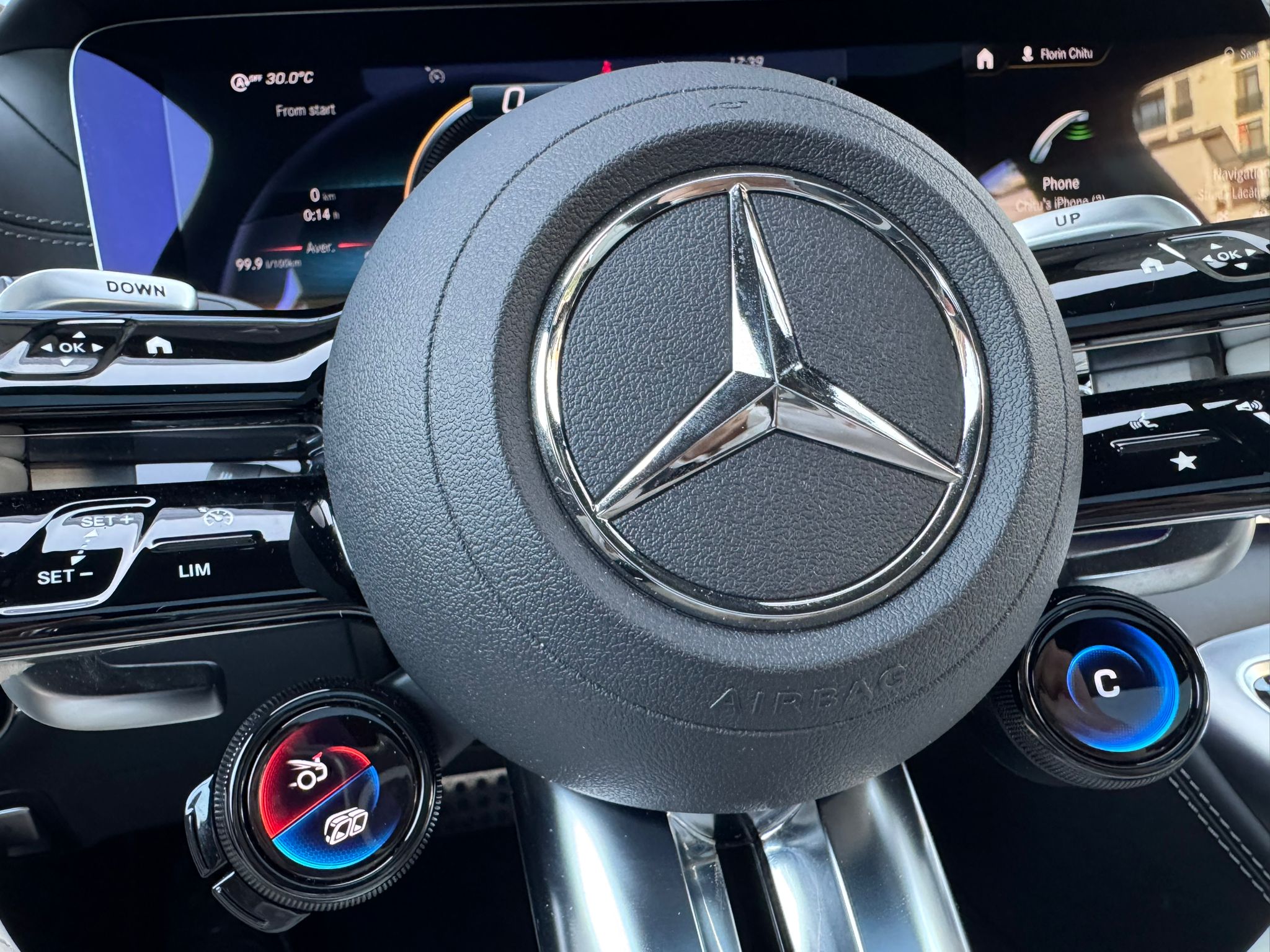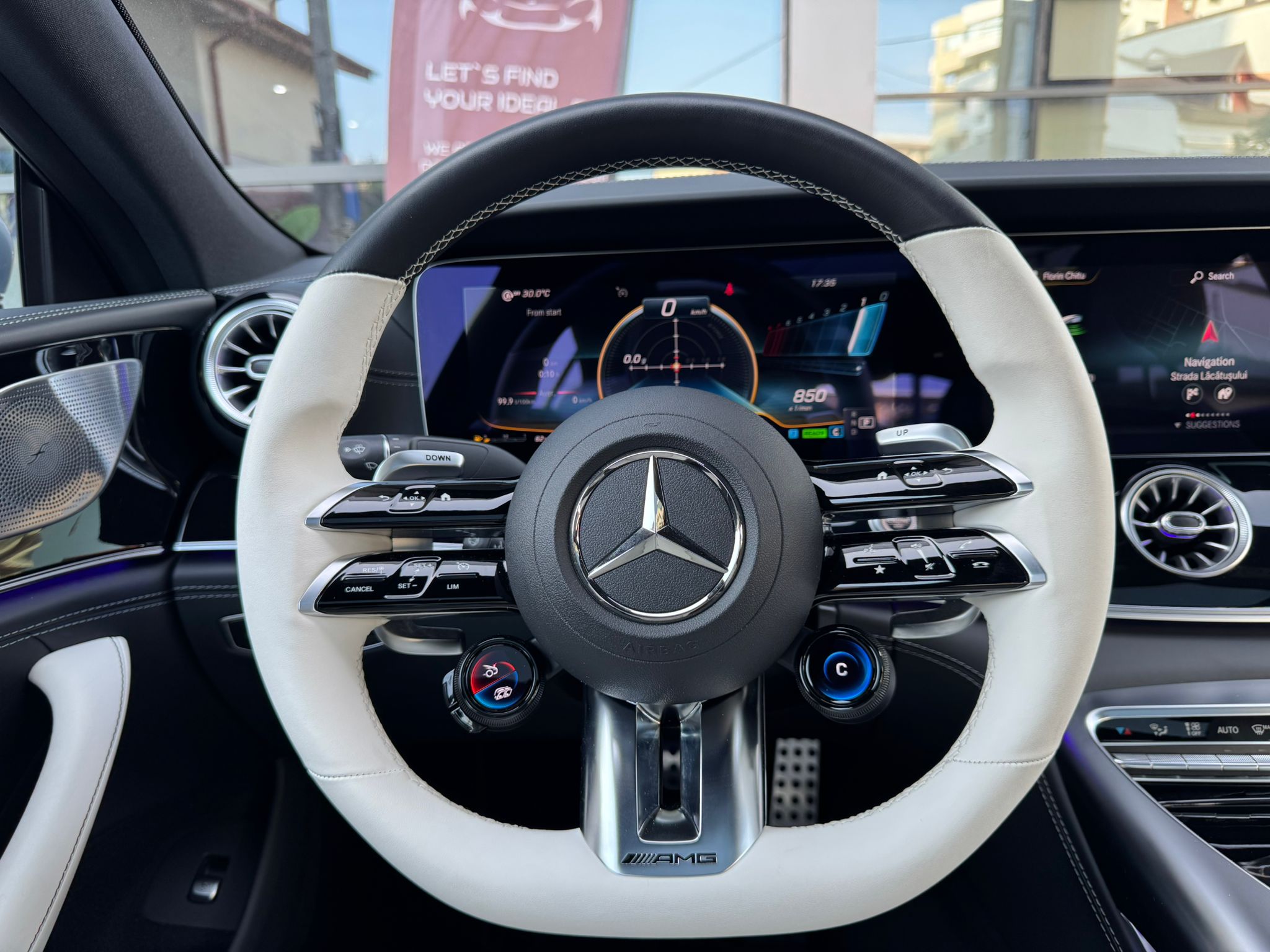 Volan sport AMG din piele, încălzit – Control precis și confortabil.