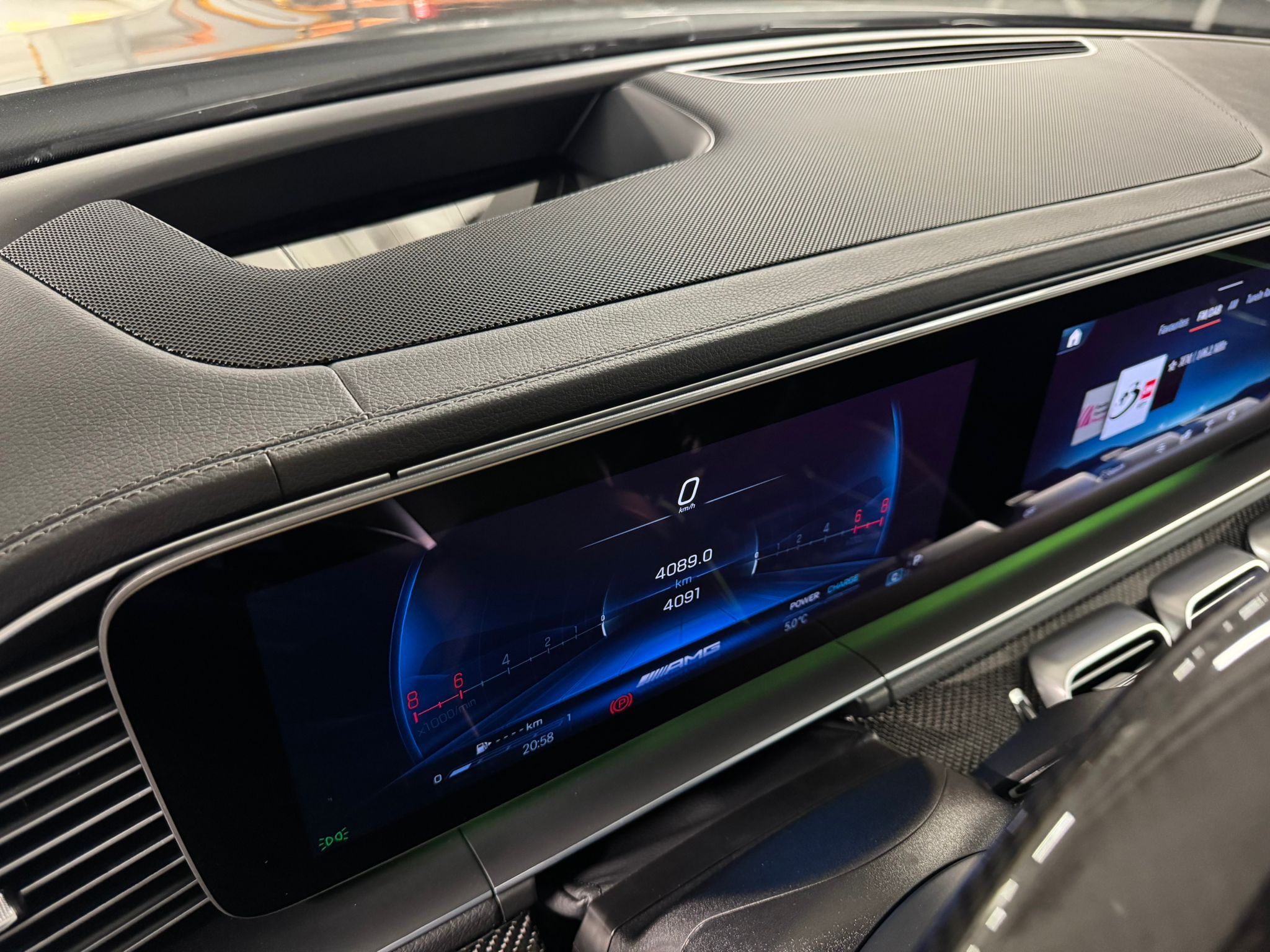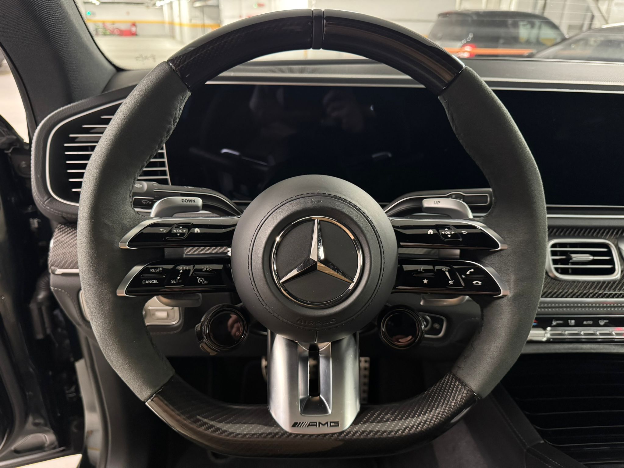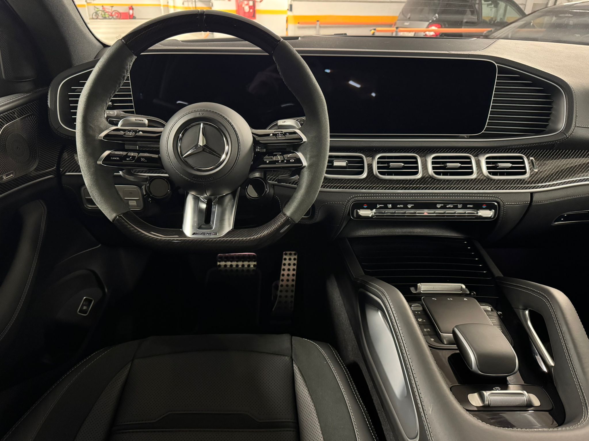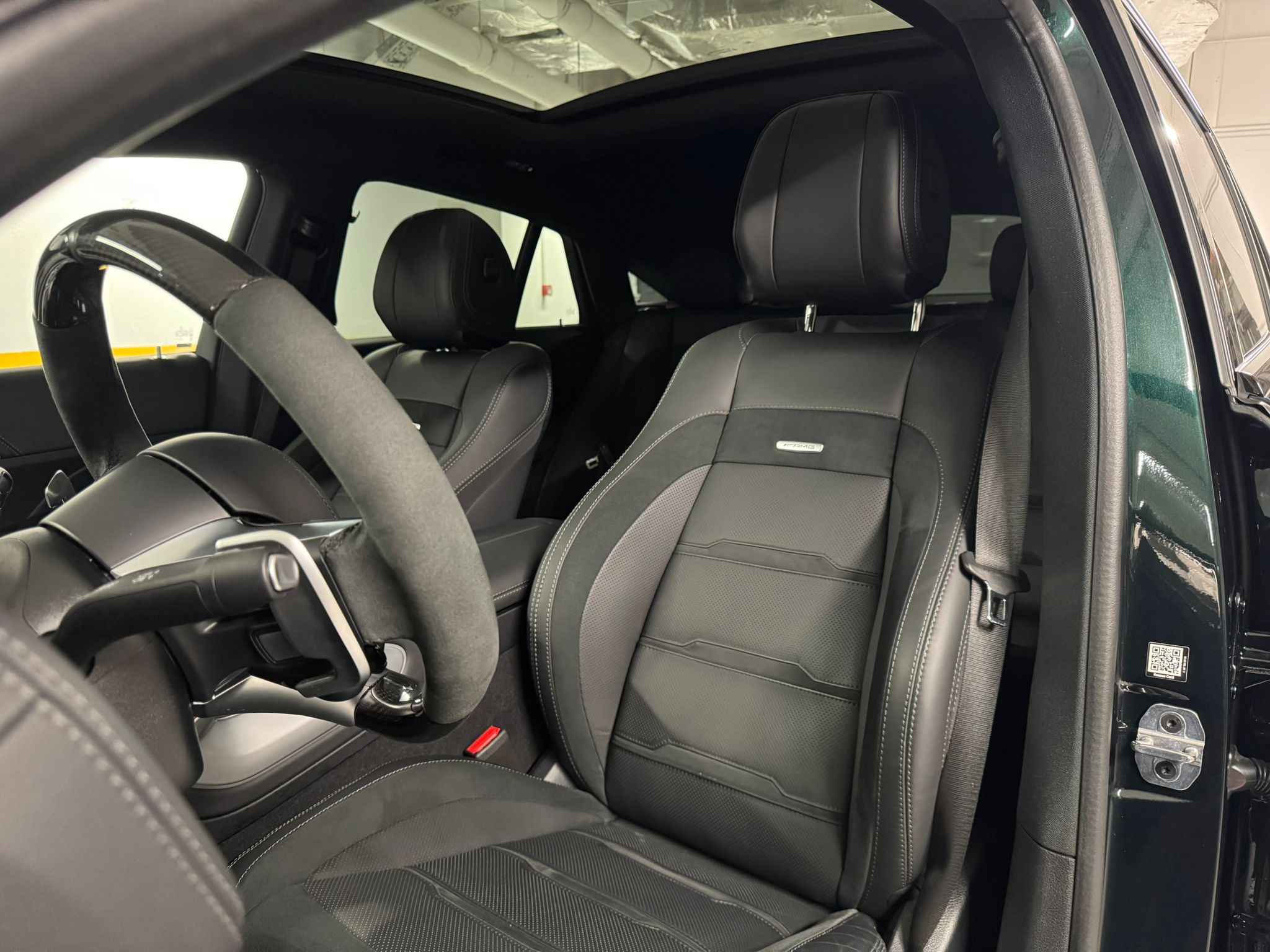 - Volan AMG Performance cu carbon și Alcantara: Aderență excelentă și design sportiv.