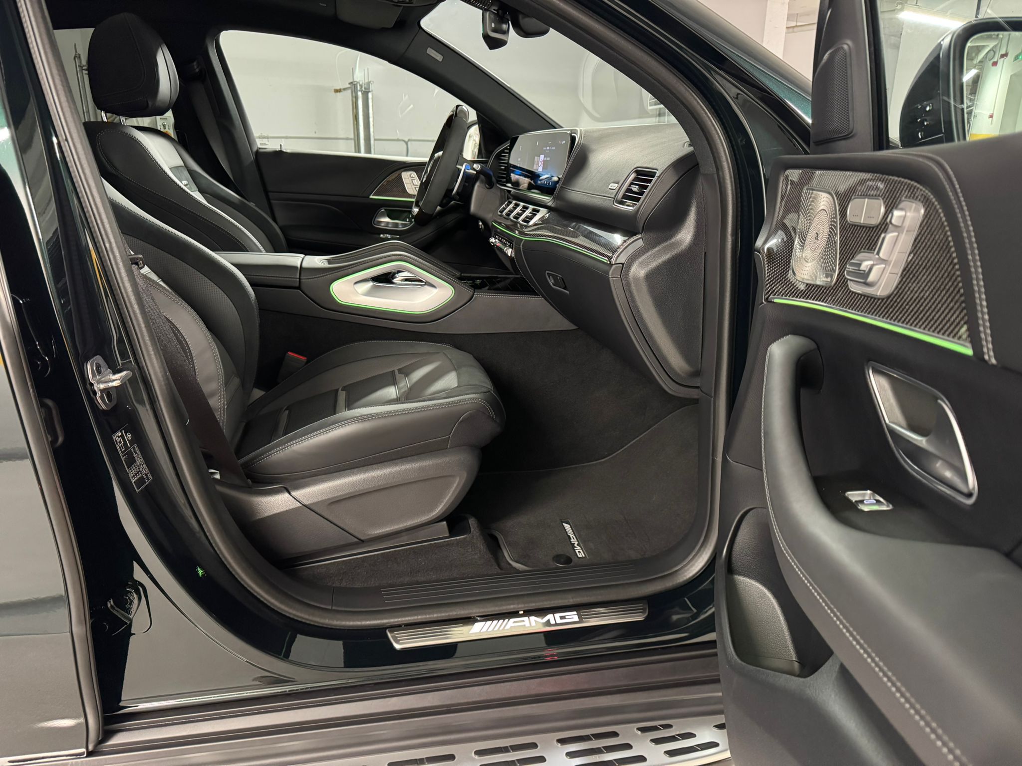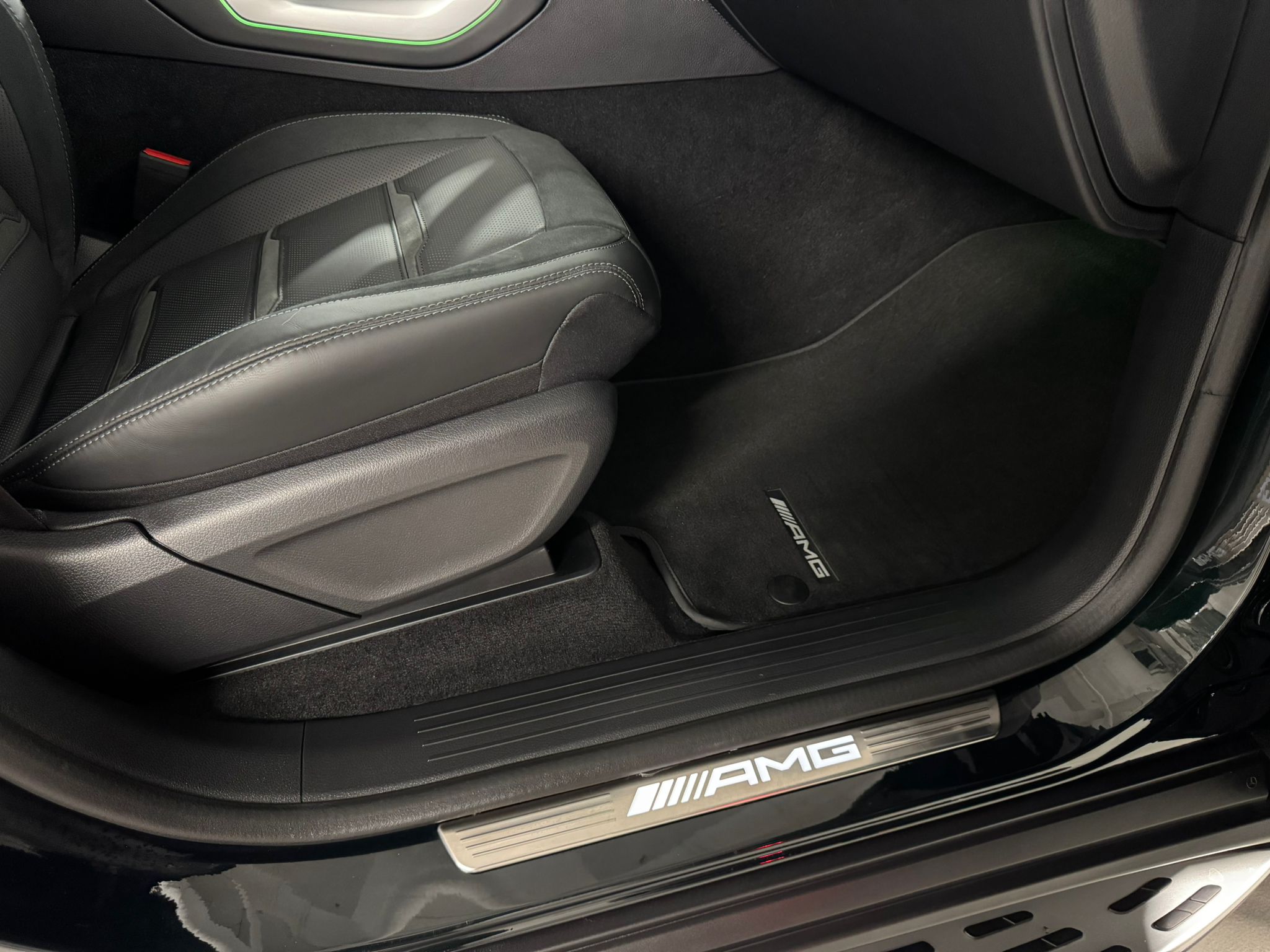- Plăcuțe AMG pe pragurile ușilor cu logo iluminat „AMG”: Adaugă o notă exclusivistă.