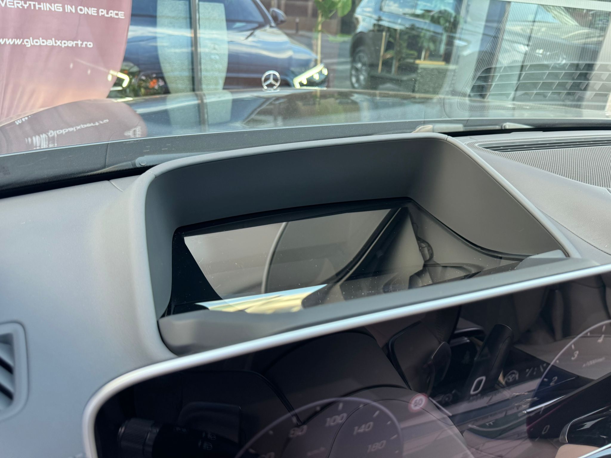 Head-Up Display cu realitate augmentată MBUX (cod 445) – Proiecții detaliate direct pe parbriz cu ghidaje de navigație.