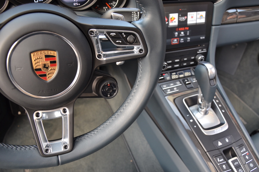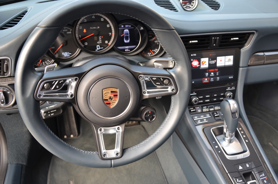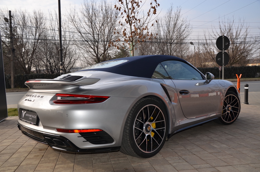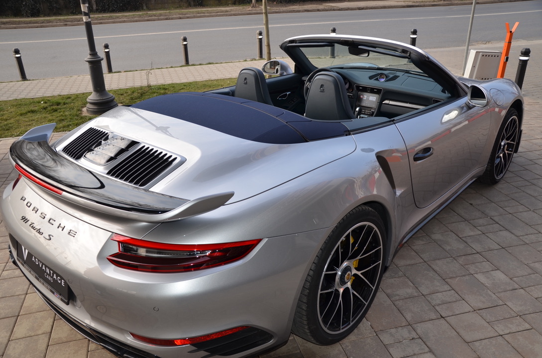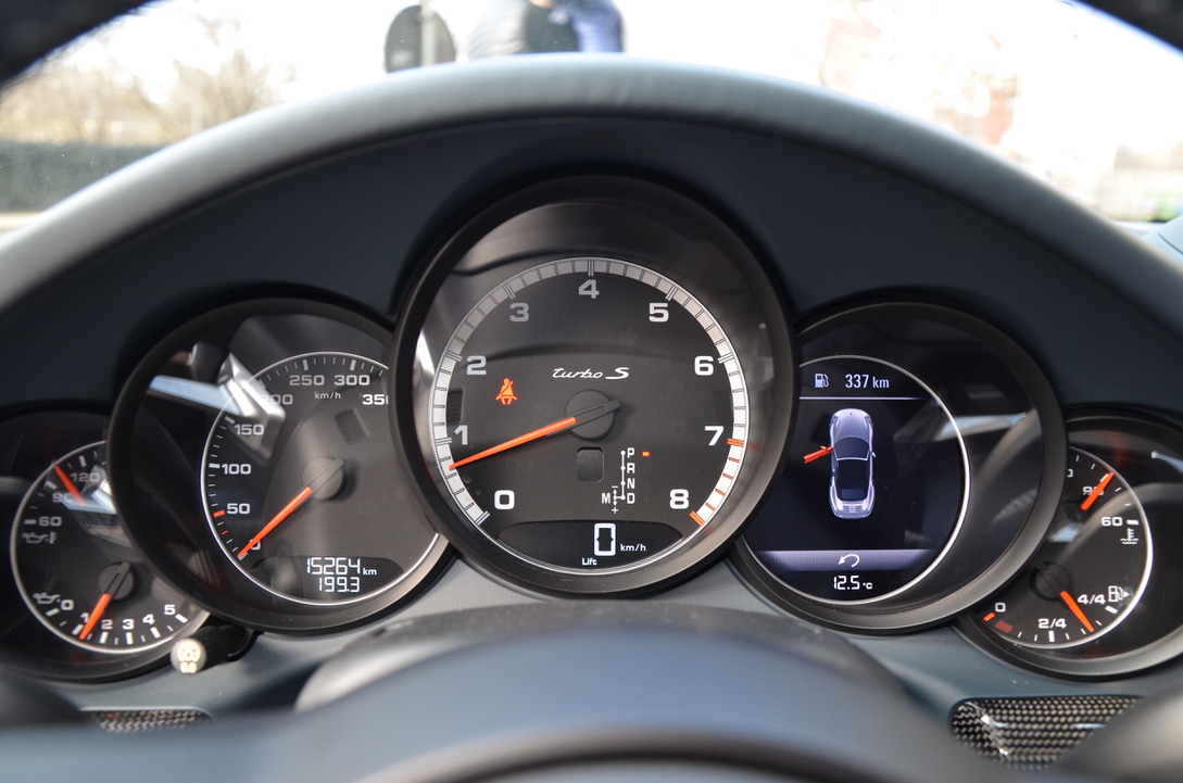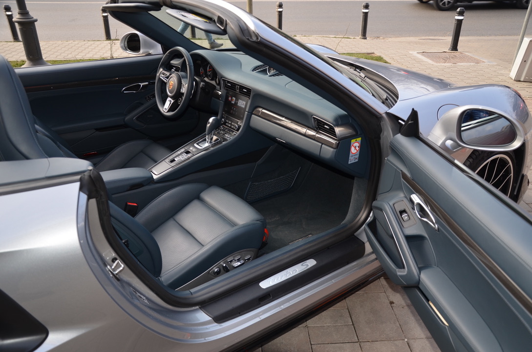 Others: alarm system, leather interior including black seats, seat heating, 20-inch 911 Turbo S wheels, interior additional package sports seat plus backrest leather, digital radio, sill paneling varnished, multifunction and steering wheel heating, lane change assistant, Porsche double clutch transmission (PDK), storage compartment for passenger footwell, light Design package, smoking package, speed limit indicator.